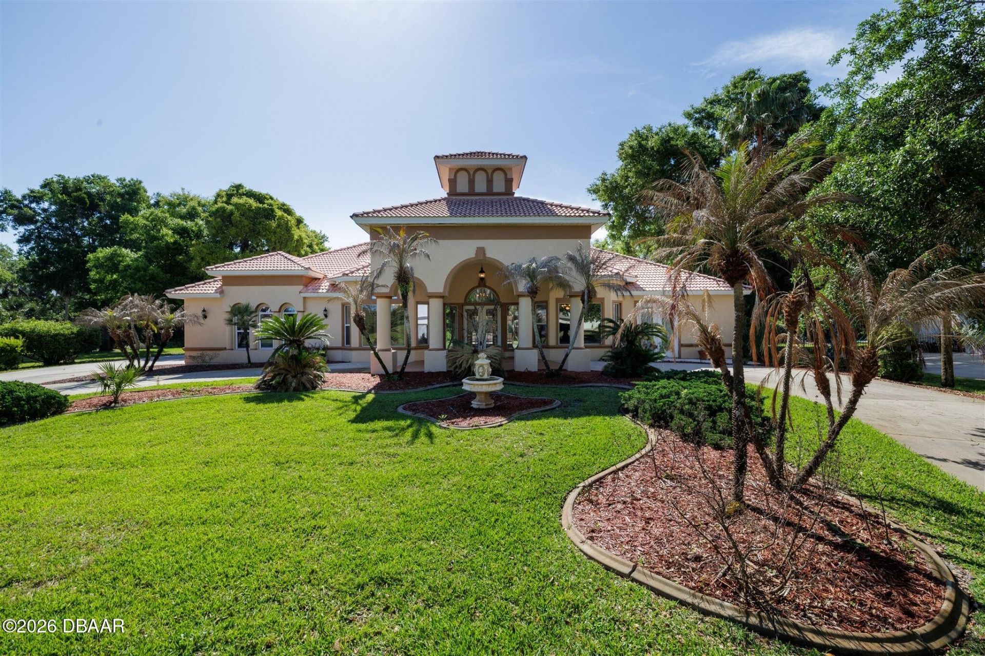 One or more photo(s) was virtually staged. Welcome to this Luxury, Custom-Built Mediterranean-style home. Step inside and prepare to be greeted by a grand foyer that leads into an impressive living room, an elegant formal dining room, and a dedicated piano room complete with a grand piano. The chef's kitchen is a culinary haven, appointed with a suite of professional-grade appliances, including integrated double wall ovens, a high-performance cooktop, microwave, dishwasher, trash compactor, and spacious walk-in pantry. At the center of this kitchen is a grand central island that offers ample prep space, complete with a sink. With a spacious breakfast area, it is ideal for setting up your coffee station to start your morning. An Entertainer's Dream Experience designed an entertainment room, featuring a dedicated home theater wall and a wet bar for serving guests in style. The expansive primary suite is a lavish retreat, featuring oversized dual walk-in closets for an organized wardrobe The primary bathroom offers a high-end, spa-like experience with a dual-head shower, a luxurious garden tub for soaking, and elegant dual vanities. A built-in makeup vanity and a private water closet with a bidet provide an added touch of luxury. This is a four-bedroom / 3.5-bathroom home with one of the bedrooms separated by the outside breezeway, which has its own bathroom. The office features custom shelving that serves as a safe room, adding an unexpected layer of security. Generously sized laundry rooms feature ample counter space for hobbies or crafts. The home is equipped with a central vacuum system and has been recently painted both inside and out, with the bedroom carpets having been replaced. New fans were replaced in the Lanai, one of the bedrooms, and the outdoor pool room. The pool controller, pump, and filter were replaced in 2024, along with the entire garage door and tracks. Enjoy year-round comfort and enhanced efficiency with multiple-zone HVAC systems and two water heaters, ensuring consistent temperature control and ample hot water throughout the home. This stunning home features a durable clay tile roof with a life expectancy of 50 years or more in Florida's climate. The community at Ormond Lakes offers an enjoyable resort-style living experience with community amenities that include a clubhouse, community pool, lighted tennis courts, fishing docks, walking paths, and a library located within the clubhouse.